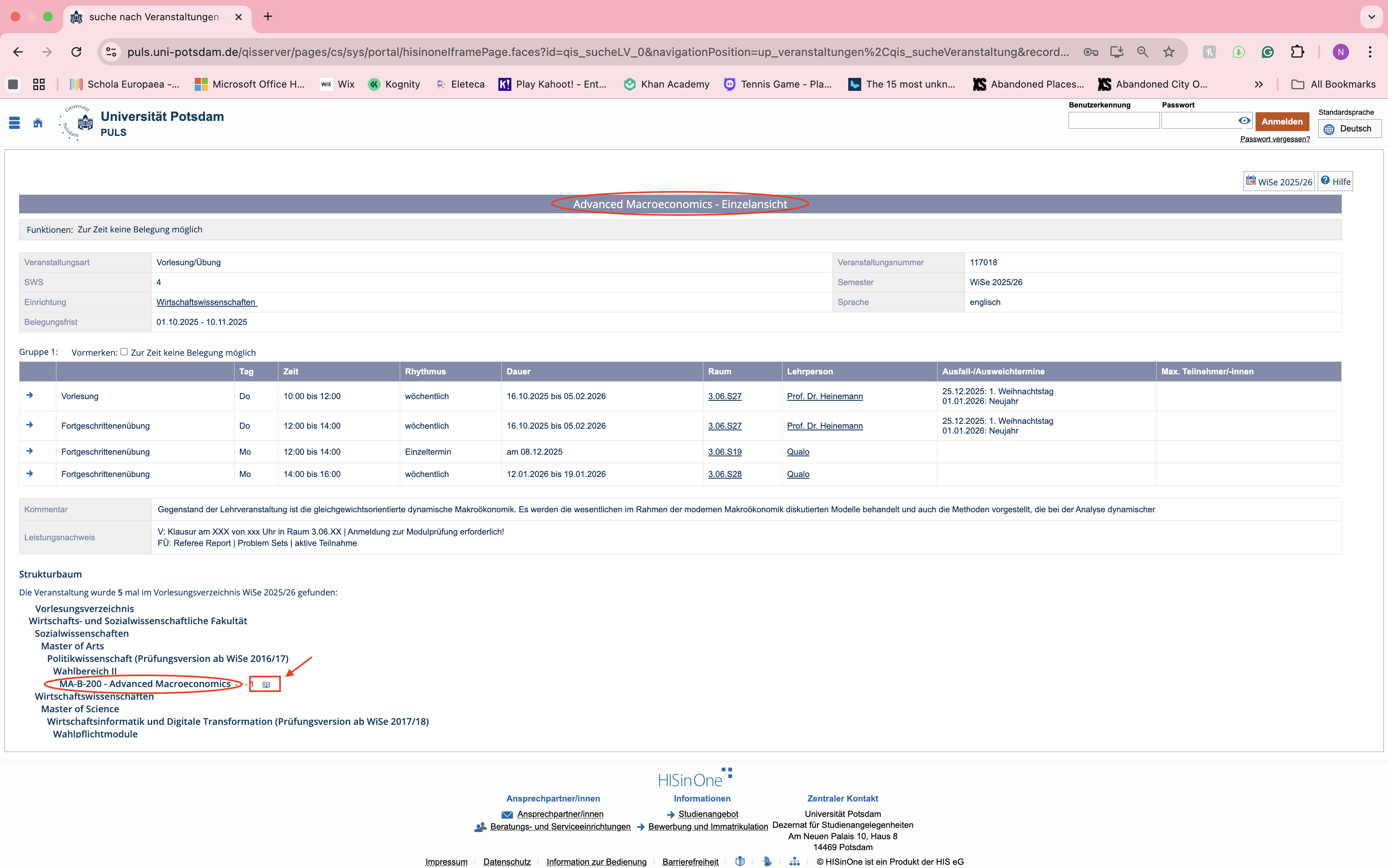 - unter der Lehrveranstaltung finden Sie den Strukturbaum mit den jeweiligen Modulen.Sie können dort auf das Buch-Icon neben dem Modultitel klicken und gelangen dann zur Modulbeschreibung, in der Sie die Angabe der ECTS finden. Die Anzahl der LP entsprechen der Anzahl der ECTS. Die Angabe der ECTS dient für internationale Programmstudierenden zur Orientierung für das Learning Agreement. Die endgültige Anzahl der ECTS der Lehrveranstaltung erfolgt nach Absprache mit den jeweiligen Dozierenden und wird auf dem Leistungsschein vermerkt, den Sie am Ende des Semesters beim International Office einreichen.