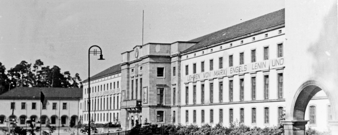 Nach 1945 wurden die Liegenschaften am Griebnitzsee zunächst von der SMAD genutzt. Im Gebäude des DRK-Präsidiums war das Oberkommando der „Gruppe der sowjetischen Besatzungstruppen in Deutschland“ unter Marschall Georgi K. Schukow untergebracht, das später nach Wünsdorf umzog. Das Areal war durch Wachposten und einen Lattenzaun gesichert und, wie der größte Teil des nördlichen Babelsberg, für die Zivilbevölkerung unzugänglich. Nachdem das Gelände 1952 von der sowjetischen Armee geräumt worden war, zog die 1948 in Forst Zinna gegründete „Deutsche Verwaltungsakademie Walter Ulbricht“ ein. Ein Jahr später wurde die Akademie mit der seit 1951 im Babelsberger Schlosspark bestehenden „Zentralen Richterschule“ (ab 1952 „Deutsche Hochschule der Justiz“) zur „Deutschen Akademie für Staats- und Rechtswissenschaft‚Walter Ulbricht‘“ (DASR) zusammengelegt. In dieser Lehr- und Forschungseinrichtung, die ihren Sitz in den Räumlichkeiten des ehemaligen DRK-Hauptlagers und im Schlosspark Babelsberg hatte und dem Ministerrat der DDR unterstand, wurden bis 1989 Leitungskader für den DDR-Staatsapparat ausgebildet. Studierende konnten sich nicht selbst bewerben, sondern wurden vom Ministerrat an die Akademie delegiert. Im April 1958 kritisierte Walter Ulbricht auf der Babelsberger Konferenz in den Räumen der Akademie die angeblich von einer bürgerlichen Ideologie geleitete Rechtswissenschaft. Folge war unter anderem die Abschaffung des Verwaltungsrechts sowie der Staats- und Rechtsgeschichte als eigenständige Fachgebiete.