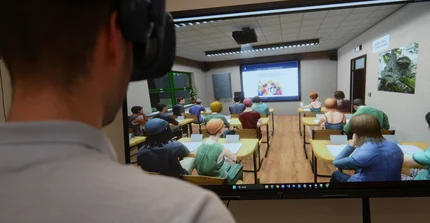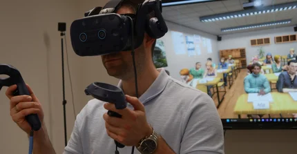 Innerhalb virtueller Unterrichtsszenarien können sich die Nutzenden frei im Klassenraum bewegen, Präsentationen halten sowie mit KI-gesteuerten Schüler-Avataren interagieren und kommunizieren. Dabei kommen unter anderem Eye-Tracking, Spracherkennung und Bewegungserfassung zum Einsatz. Das VRLab dient sowohl der erziehungswissenschaftlichen Unterrichtsforschung als auch der praxisnahen Ausbildung angehender Lehrkräfte. In Blockseminaren werden zentrale Aspekte professionellen Lehrkräftehandelns – insbesondere Klassenmanagement und das Führen von Unterrichtsgesprächen – in der virtuellen Realität erprobt, trainiert und anschließend theoriegeleitet reflektiert