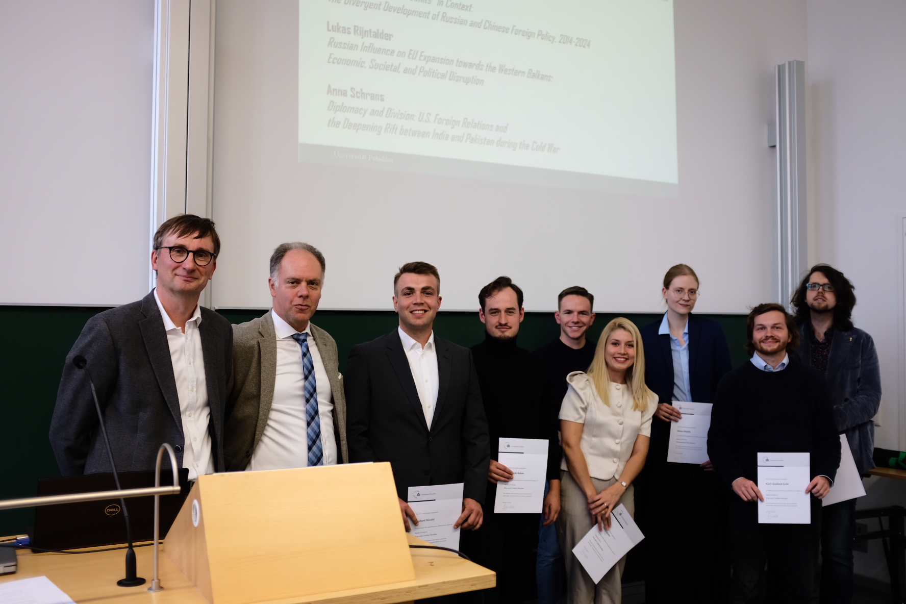 This year, graduates Paul Behne and Raphael Nicolai from the MA War Studies programme received a special honour with the Best Prize, which is awarded each year to recognise the outstanding achievements of students. The Best Prize includes an honorary ring and prize money of €500, both of which are donated by the Friends of the Chair of Military History.