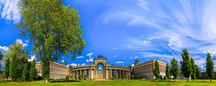 Located within the historic Neues Palais (New Palace) complex, the Audimax is the University of Potsdam's largest and most prestigious event hall, accommodating over 400 guests. Combining imperial architecture with state-of-the-art media technology, the Audimax provides an ideal setting for conferences, lectures and cultural events. It is located at the campus "Neues Palais" on the western end of famous Park Sanssouci, which with its approximately 290 hectares of park area and its many palaces and buildings of different styles, is one of the most beautiful park landscapes in Germany and a real visitor magnet.