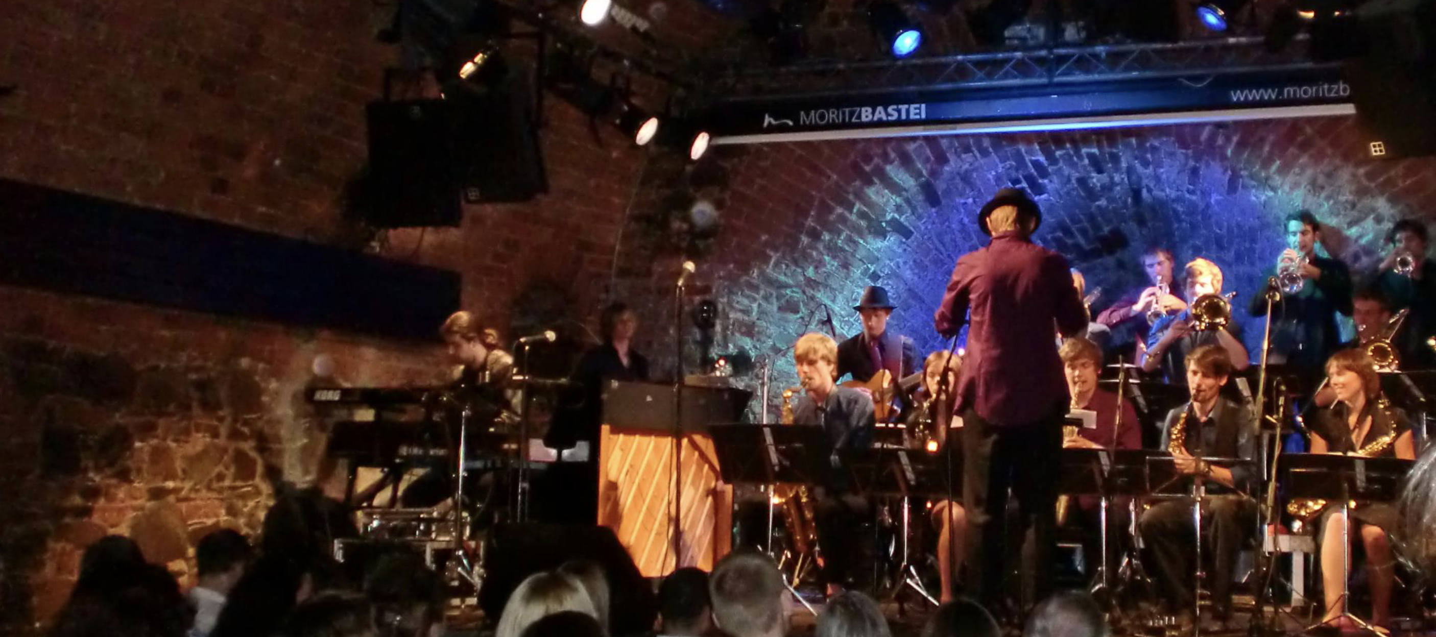 Geleitet wird die Bigband von Musikstudierenden und Alumnis. Wenn du auch ein Bigbandinstrument spielst und Interesse hast, bei uns mitzumachen, melde dich! Wir proben jeden Dienstag von 18:00 bis 20:45 Uhr – auch in den Semesterferien – im Kammermusiksaal des Musikhauses auf dem Campus Golm (2.06.2.01).