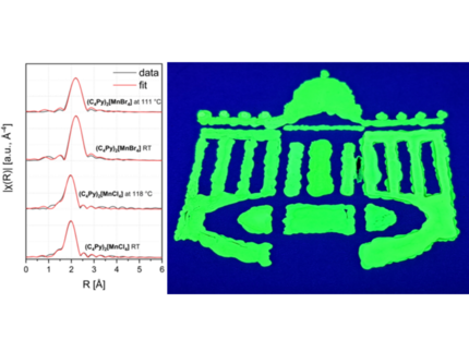 Low-melting ionic solids with stirring luminescent properties hold significant promise for optoelectronic applications. Here, we compare and contrast the structural and spectroscopic correlations of two highly luminescent organic-inorganic manganese halides (C4Py)2[MnCl4] and (C4Py)2[MnBr4], synthesized from their respective manganese halides and N-butyl pyridinium halide ionic liquids. Although both compounds exhibit very similar bulk structures (determined by single-crystal and powder X-ray diffraction) and overall similar electronic structures (as indicated by the density of states), they differ notably in their optical properties. The chloride salt, (C4Py)2[MnCl4], has a photoluminescence decay lifetime ten times longer than its bromide analogue, (C4Py)2[MnBr4]. Furthermore, PL-quantum yield of (C4Py)2[MnBr4] is 1.6 times higher than that of (C4Py)2[MnCl4], which was attributed to the heavy atom effect of bromine atoms, based on periodic density functional calculations (with and without spin-orbit coupling). Although photoluminescence is only exhibited in the solid state, EXAFS analysis confirms that the coordination environment of manganese is remarkably similar in crystalline and molten states, potentially suggesting that photoluminescence is associated with the long-range crystalline order, which is lost upon melting. Building on these fundamental studies, the potential of (C4Py)2[MnCl4] as a luminescent security ink for anticounterfeiting applications has been demonstrated.