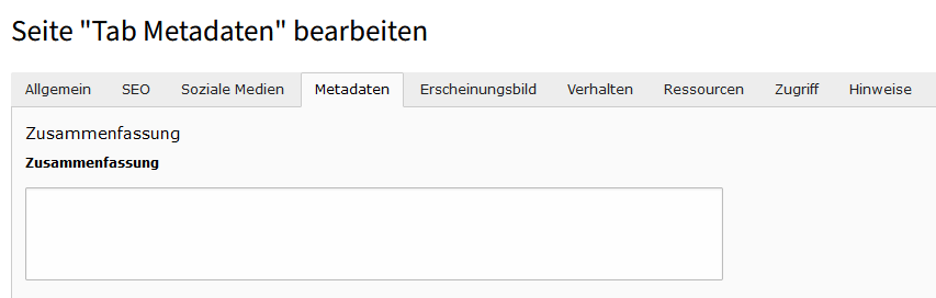 Seiteneigenschaften: Tab „Metadaten“