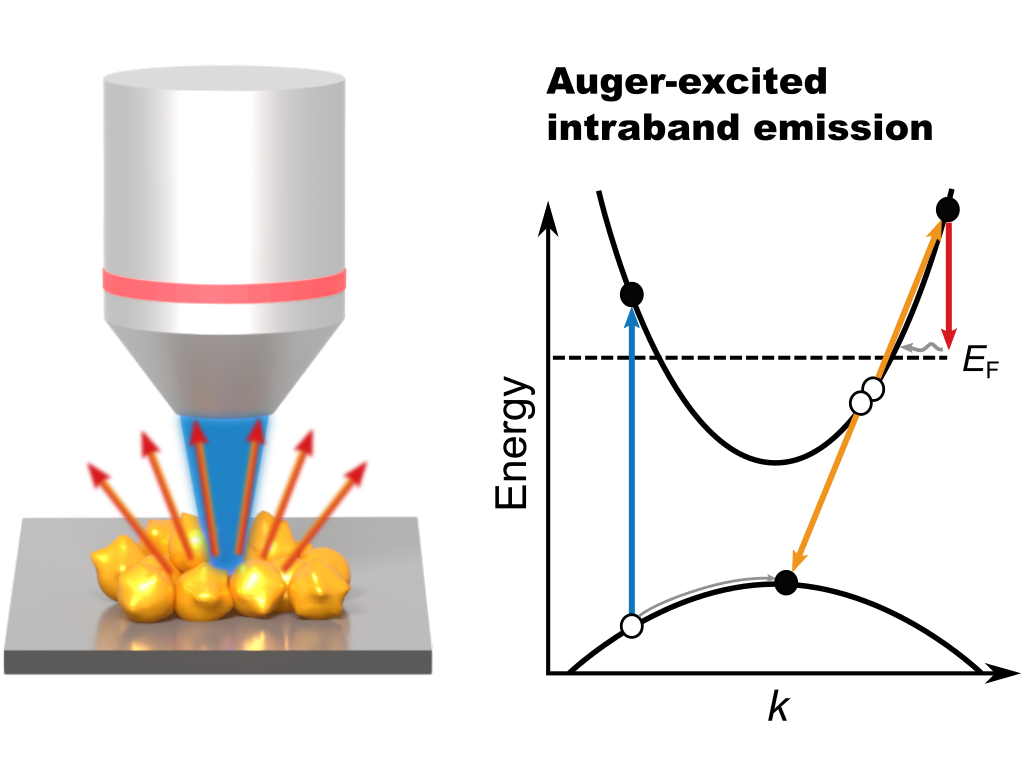 Photoluminescence from metal nanostructures offers a promising means of studying excited charge processes in metal nanostructures. Moreover, they have many potential applications in sensing, imaging, and nanothermometry. However, a general understanding of the emission from metal nanoparticles has not yet been achieved. In particular, the possible presence of sequential emission mechanisms involving the excitation of conduction band electrons via interband Auger scattering remains unclear. In this article, we provide spectroscopic evidence of Auger-excited intraband emission from gold nanoflowers. We employ a combination of photoluminescence and photoluminescence excitation spectroscopy to investigate the excitation pathways in films of gold nanoflowers. While, on the one hand, the excitation spectrum clearly demonstrates absorption by interband transitions, the emission spectra can be unequivocally assigned to intraband recombination. The combination of these two observations can be conclusively explained only by Auger-excited intraband emission. These results suggest Auger excitation to be a promising route to generate energetic nonthermal electrons with energies substantially above the Fermi level. Exploiting this effect could strongly benefit applications for nanoluminescent probes and the progress of plasmon catalysis.