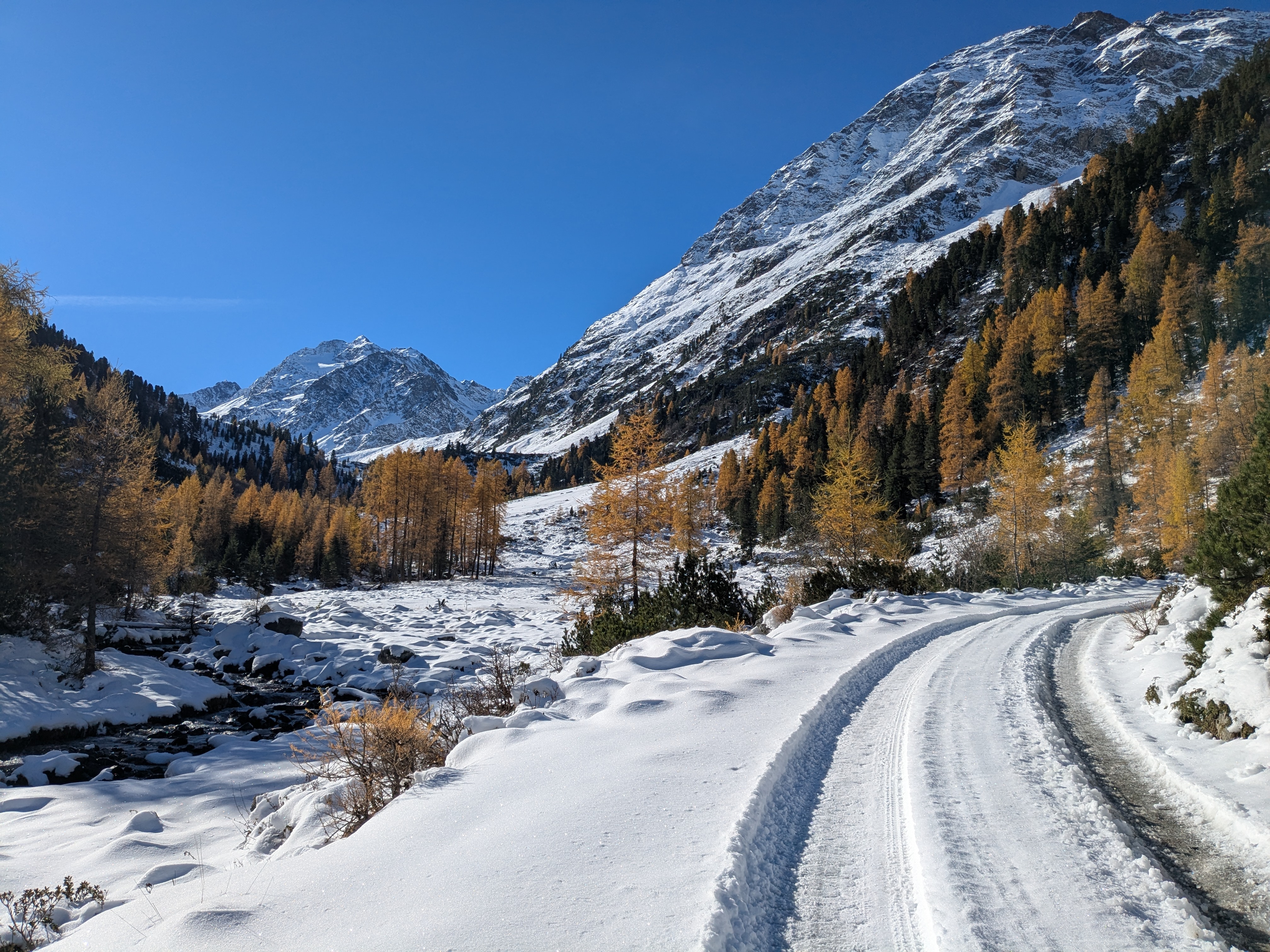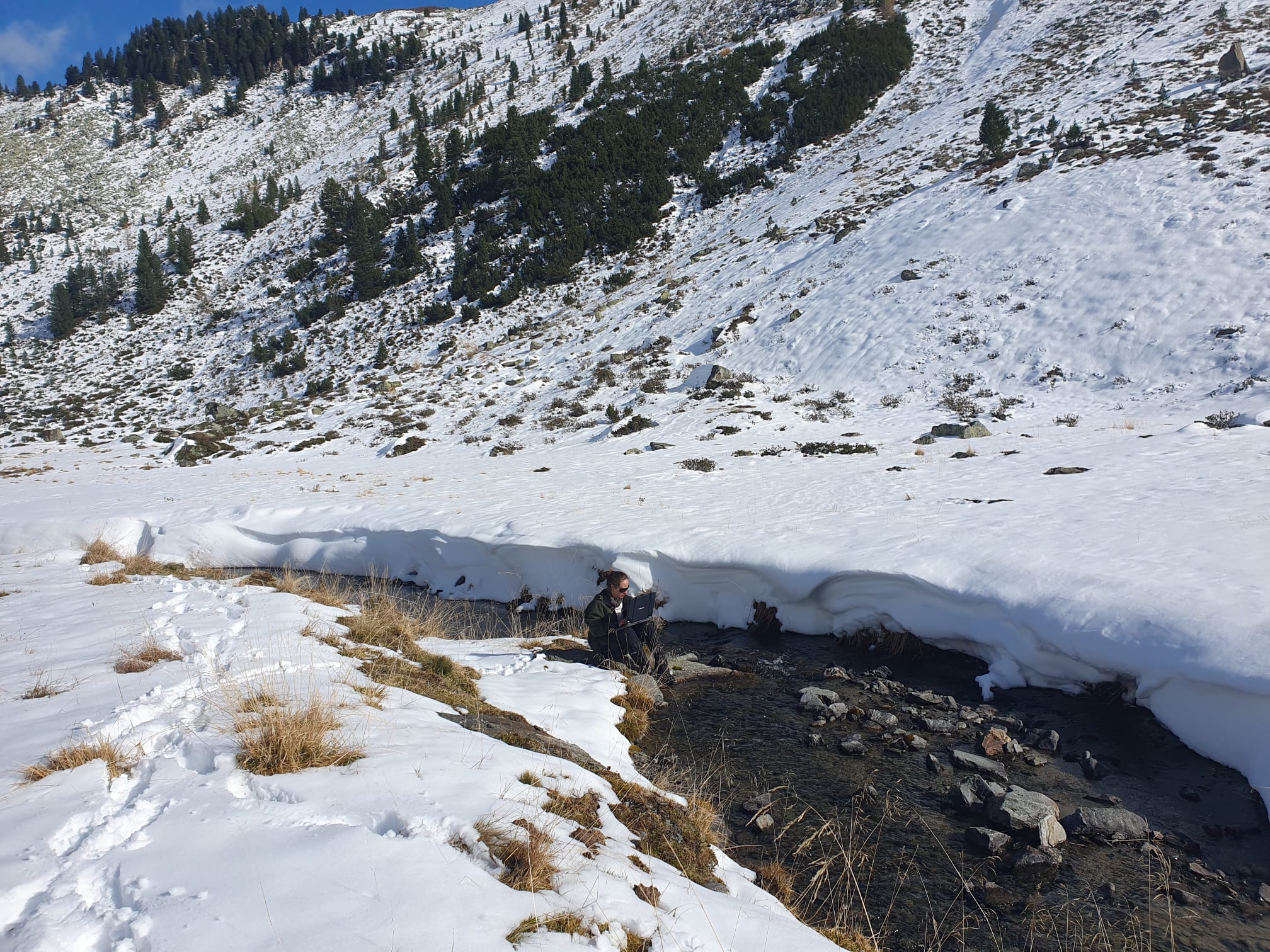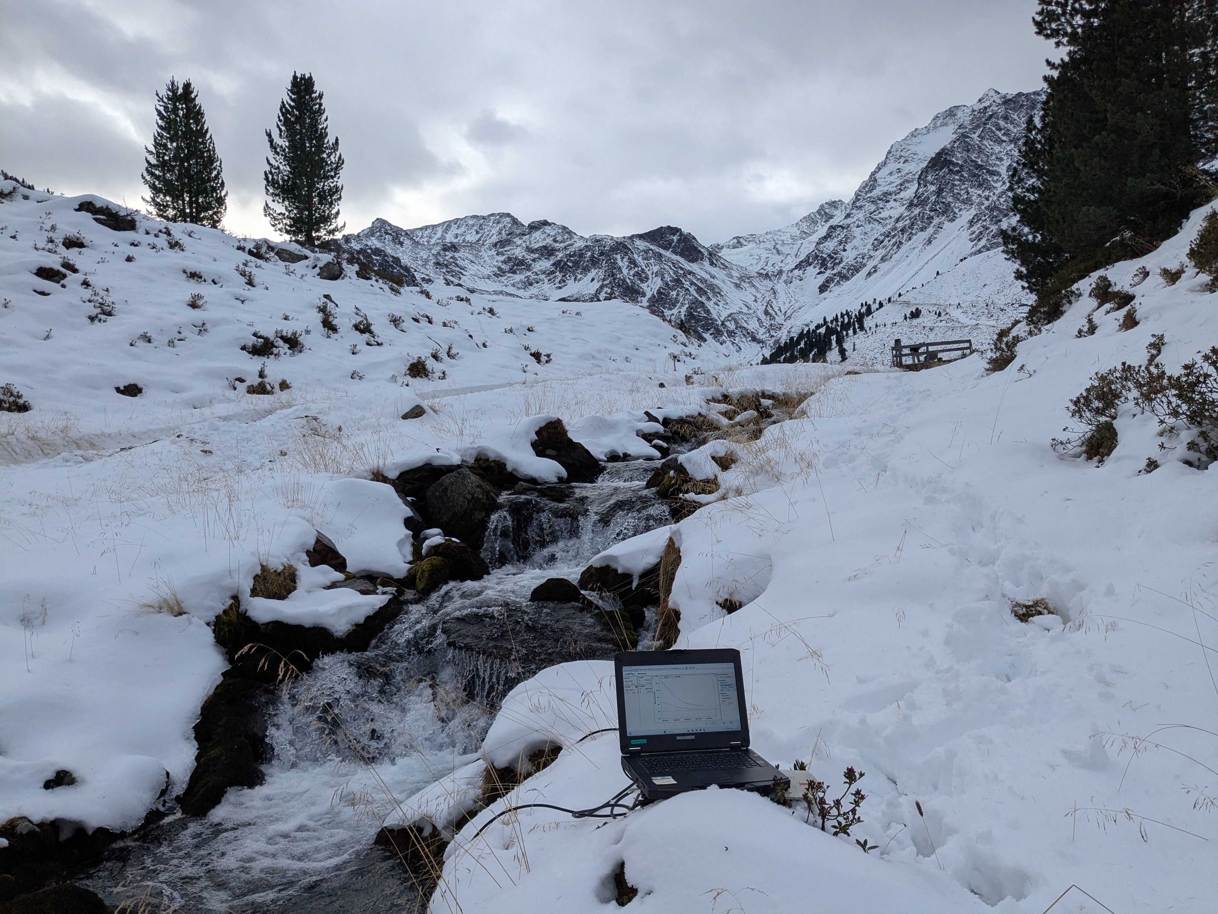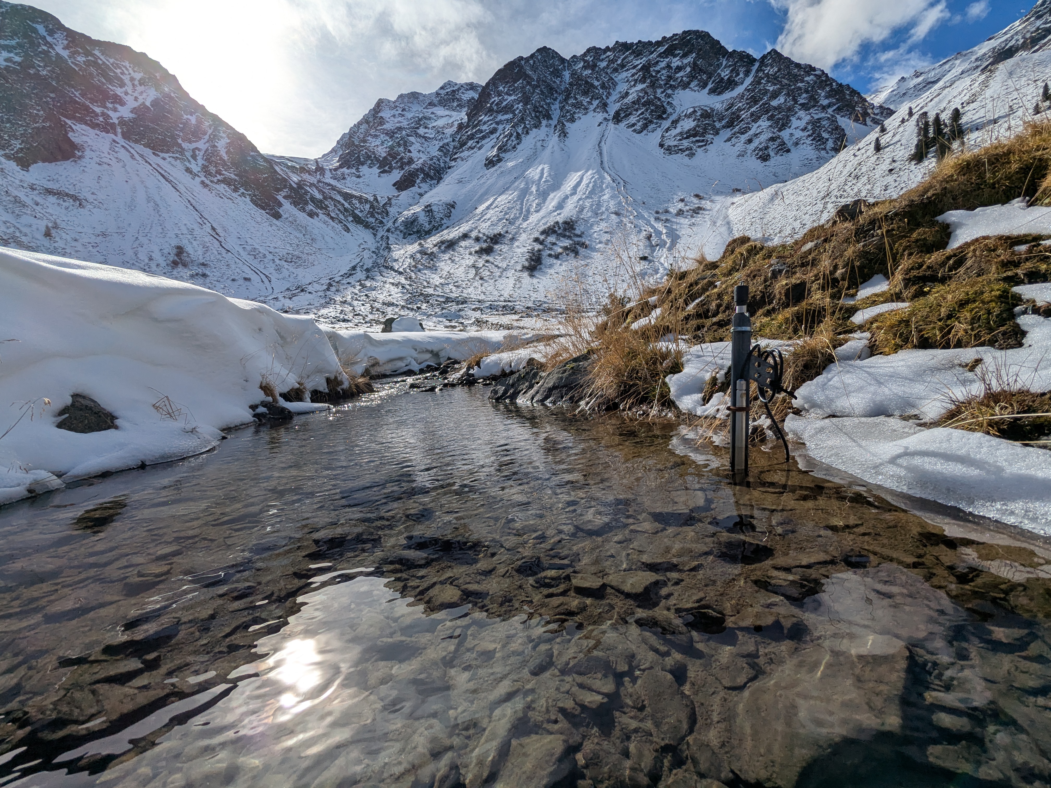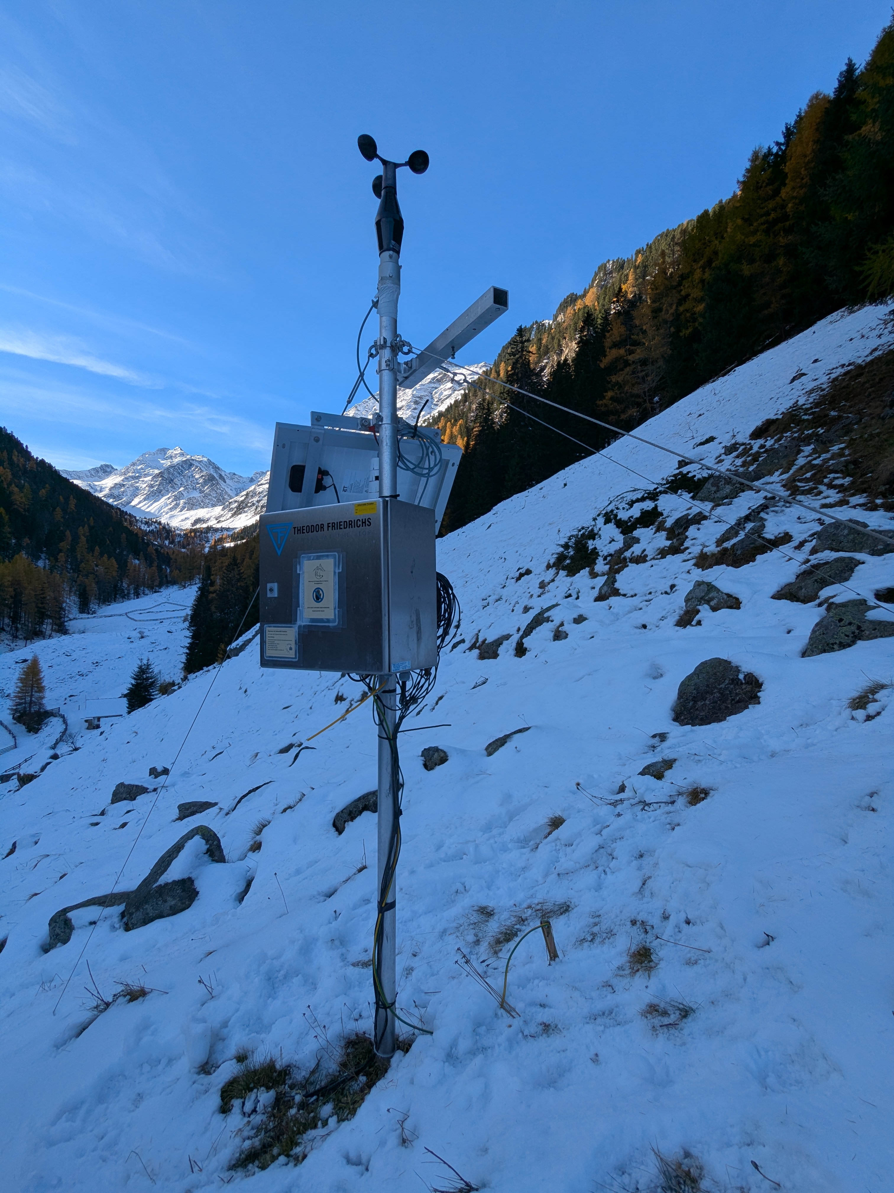 Our most recent mission at the end of October 2025 took us into winter conditions: from 1500 m upwards, the access road was blocked by snow, so we could only reach our measuring stations, some of which are installed at 2200 m, on foot. Nevertheless, we were able to secure all the data and prepare the equipment for the coming winter. With each measurement campaign, our data set grows, and with it the ability to record changes in the alpine water balance more precisely.