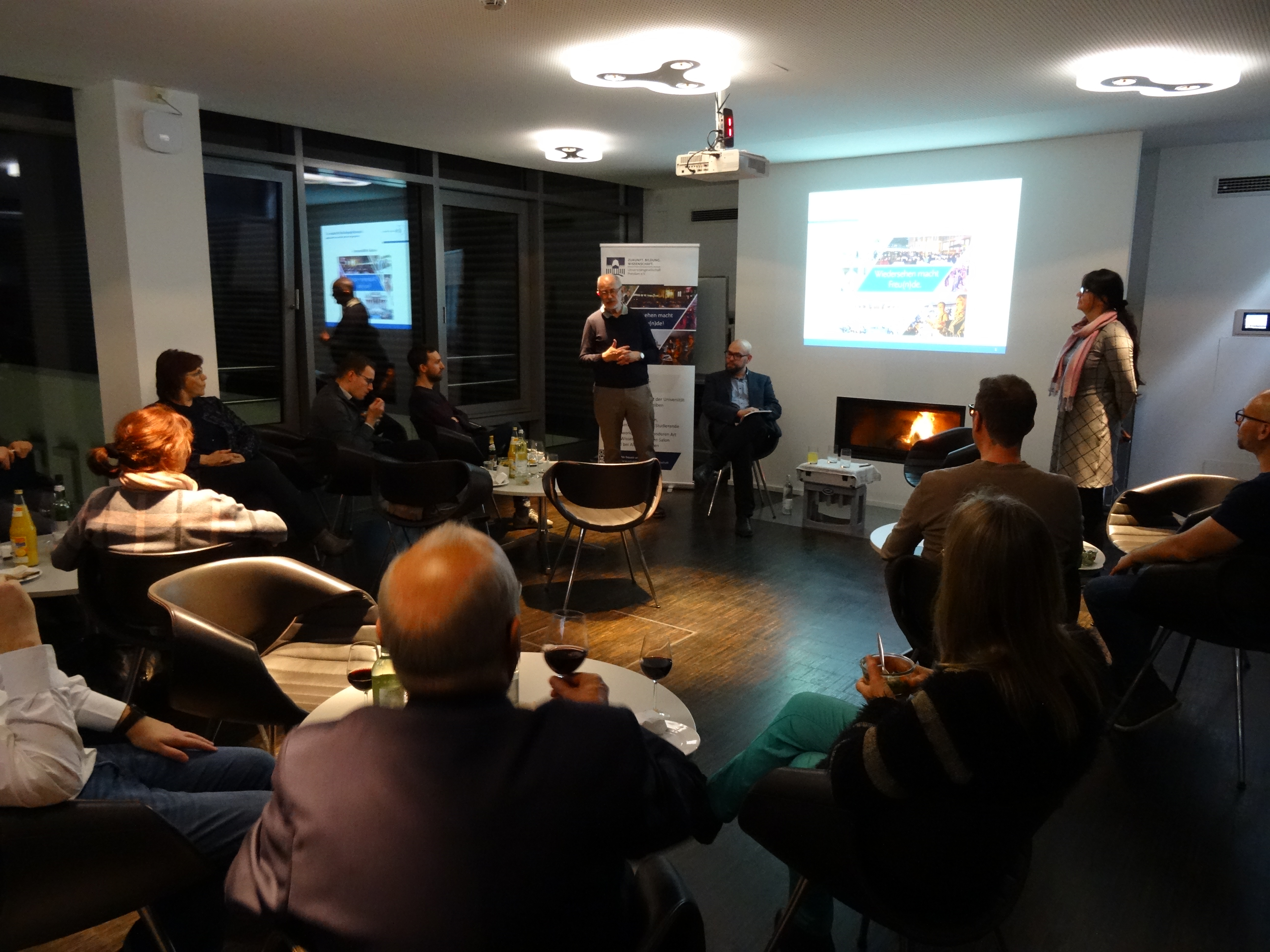 Moderiert von Dipl. Pol. Katja Lass-Lennecke, der Vorsitzenden des WiSo-Kapitels in der Universitätsgesellschaft Potsdam e.V., kamen er und das Publikum im Rahmen eines Kamingesprächs in der Wissenschaftsetage im schönen Raum Schwarzschild bei einem gemütlichen Kaminfeuer und mit Blick über die Dächer der Stadt über aktuelle Themen der Energieknappheit, Nachhaltigkeit und den politischen und gesellschaftlichen Wandel ins Gespräch. Die positive Botschaft des Abends war: neue Herausforderungen - neues Denken - neue Lösungen. Im Anschluß ludt die Universitätsgesellschaft zum gemeinsamen gemütlichen Ausklang bei Buffet und Getränken ein.