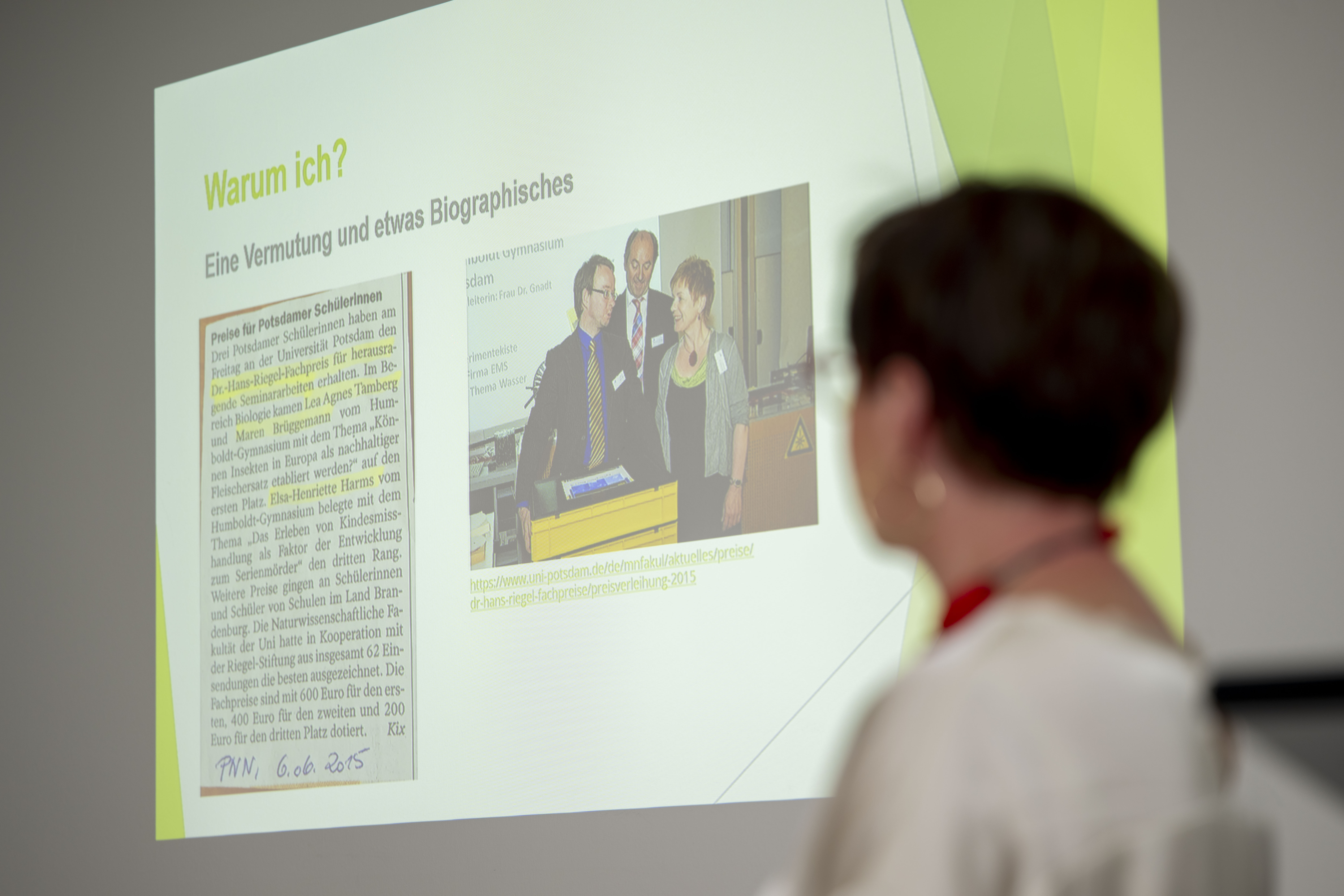 Am Nachmittag folgte im Anschluss an die Veranstaltung „Uni trifft Schule“ die feierliche Verleihung des Dr. Hans Riegel-Fachpreises, bei der herausragende Seminararbeiten von Schülerinnen und Schülern aus Brandenburger Schulen ausgezeichnet wurden.