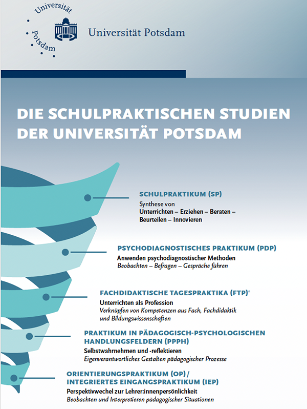 Das Lehramtsstudium an der Universität Potsdam zeichnet sich insbesondere durch eine hohe Praxisnähe aus, die durch fünf studienbegleitende Praktika (drei im Bachelor- und zwei im Masterstudium) in den Schulpraktischen Studien gewährt wird. Diese sind in Form eines Spiralcurriculums aufgebaut. Dies bedeutet, dass die Inhalte der verschiedenen Praktika immer wieder aufgegriffen, vertieft und mit den neuen Inhalten ergänzt werden. Ziel ist es, dass im Studienverlauf eine umfassende Kompetenzentwicklung stattfindet.